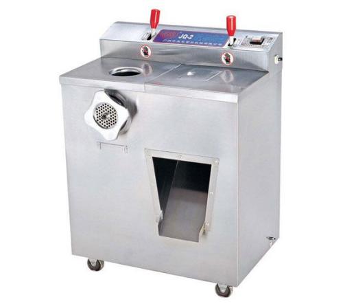 絞肉機(jī)由機(jī)架、傳動(dòng)部件、絞軸、絞刀、孔格柵組成。機(jī)架為一箱體,傳動(dòng)也很簡(jiǎn)單,電動(dòng)機(jī)輸出皮帶輪經(jīng)一級(jí)減速,把動(dòng)力傳遞給絞軸旋轉(zhuǎn)。絞軸是一根螺旋推進(jìn)軸,用以輸送肉塊。絞刀連同絞軸一起旋轉(zhuǎn),在絞刀與軸之間有剪切柵板。絞刀另一側(cè)是輸出肉餡的孔格柵。使用時(shí)要把肉分割成小塊并去皮去骨,再由入口投進(jìn)絞肉機(jī)中,啟動(dòng)機(jī)器后在孔格柵擠出肉餡。肉餡的粗細(xì)可由絞肉的次數(shù)來(lái)決定,反復(fù)絞幾次,肉餡則更加細(xì)碎。該機(jī)還可用于絞切各類蔬菜、水果、干面包碎等,使用方便,用途很廣。