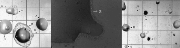 如圖所示,油煙顆粒物主要有常規(guī)液態(tài)油粒(A)、油包食材渣(B)、油水混合(C)、水包油(D)、油包水(F)等,除此之外還有固態(tài)顆粒(G)等形態(tài)。
