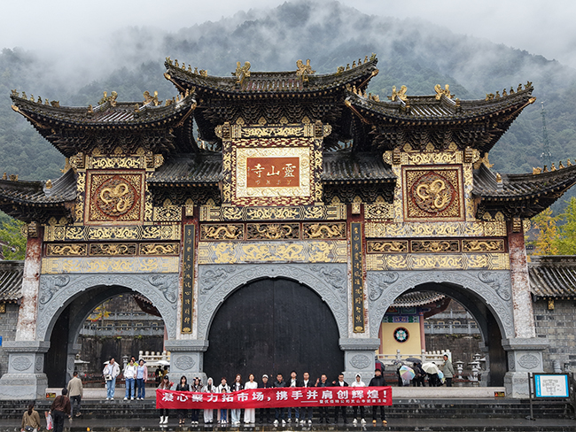 第二天,全團(tuán)隊(duì)的人便集體前往靈山寺。靈山寺是多年的古寺,古樸厚重之感很強(qiáng)。在靈山寺門(mén)前,進(jìn)行了一次集體合影。